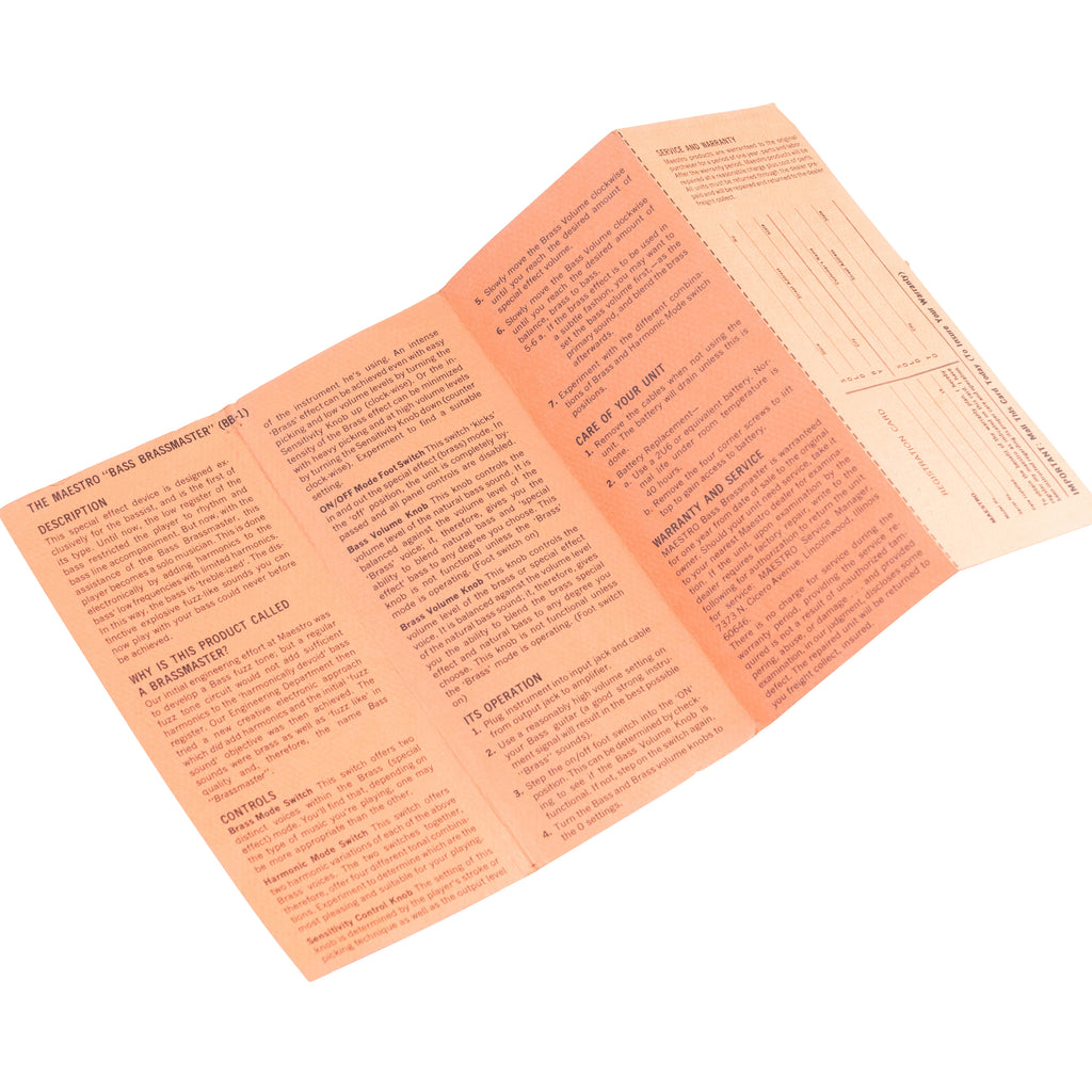 今回入荷した個体は、本体には多く傷、使用感がありますが、外装、内部ともにフルオリジナルで、元箱、説明書も付属することから、大事に使われていた個体であると想像できます。大事にこの時代にまで残されていた個体だからなのか、音色も特に優れていると感じます。Bass Brassmasterは元々、特段ゲインの高いファズではありませんが、今回入荷した個体は比較的ゲインが高く、圧縮感があるため、弾きやすい印象があります。また、原音、エフェクト音、ともにかなり野太く、簡単に“ロックな音色”を作り出してくれます。この文章を書いている私(CULT 細川)は、過去にBass Brassmasterを2台所有していたことがありますが、それらと比べても音色的に優れた個体だと思います。なお、Bass Brassmasterはベース用に開発されていますが、ギターに使ってもとてもユニークなアッパーオクターブが得られます。